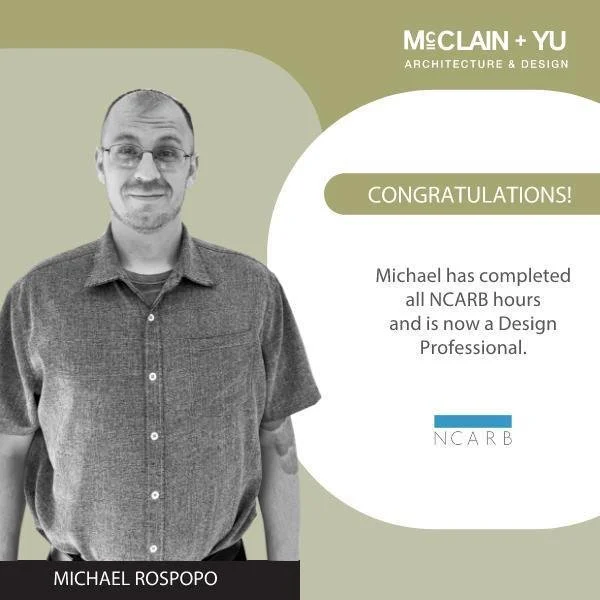 Please join us in congratulating Michael Rospopo on his promotion to Design Professional. Michael brings focus, care, and a collaborative spirit to both our team and the work itself. He approaches each project with intention, curiosity, and a strong commitment to seeing ideas through with clarity and precision.